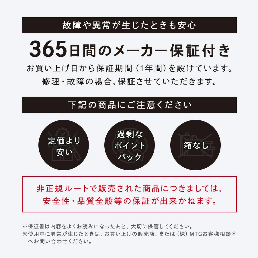 家庭用脱毛器は安くないので、保証面を考えて、必ず公式取扱店から購入しましょう。